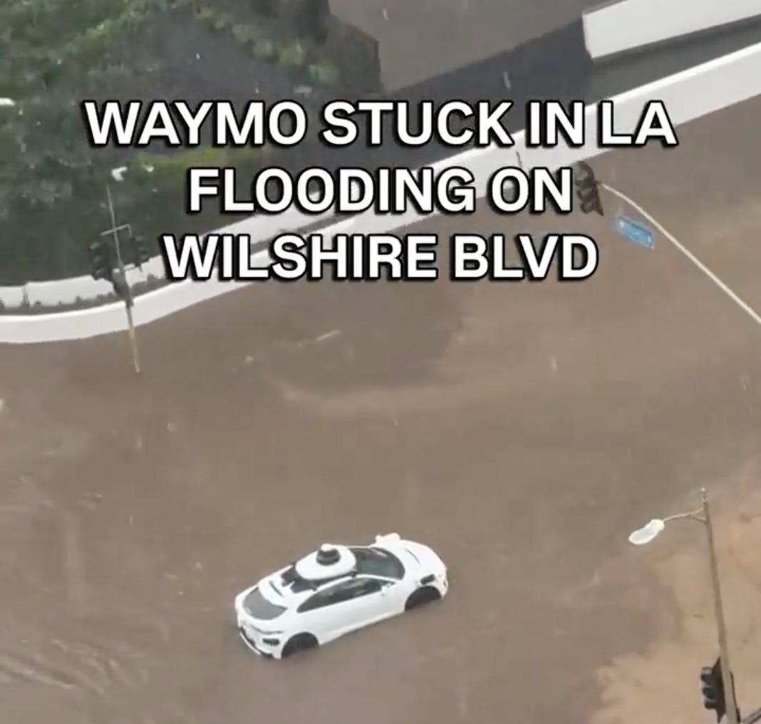 Delivery bots weren’t the only bots impacted by the L.A. floods however. Here’s a Waymo taking a dip.