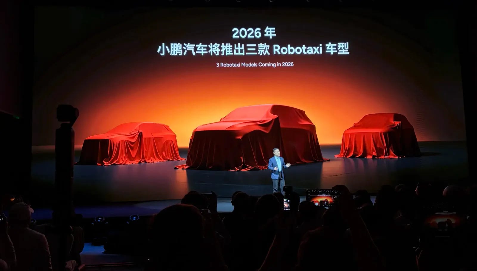 XPeng also made several consumer-facing announcements at AI Day. The company will introduce a self-driving trim level to its consumer vehicles, named “Robo”, next year, which the company says will share the same hardware and software platforms as its robotaxi fleet. In addition, XPeng is also introducing several autonomy-oriented pedestrian-facing features, including a sun-visor-style external display designed to communicate short messages with pedestrians. Xiaopeng described the effort as part of XPeng’s dual strategy to develop both shared robotaxis and “private-enjoyment” L4 vehicles that offer an autonomous experience for individual owners, not unlike Tesla’s approach.