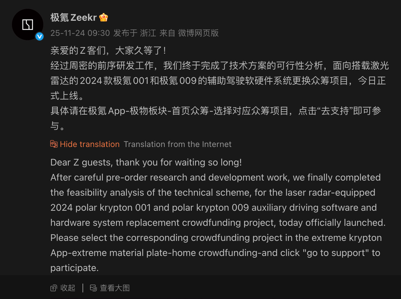 Has crowdfunding gone too far? Zeekr has launched a crowdfunding campaign in China to upgrade the driver-assist hardware and software on its older models.